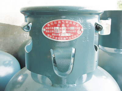 “螺丝瓶”是指护罩用螺丝联接到瓶体的液化石油气钢瓶(见图1 ),这类钢瓶瓶体上没有任何永久性制造日期,钢印已经不符合GB8334《液化石油气钢瓶定期检验与评定》的要求,并且使用年限已近15年,存在安全隐患,我区将从2011年9月30日起实行强制报废,任何充装单位不得充装“螺丝瓶”。目前,按照国家标准《液化石油气钢瓶》制造的液化石油气(见图2)可正常使用。