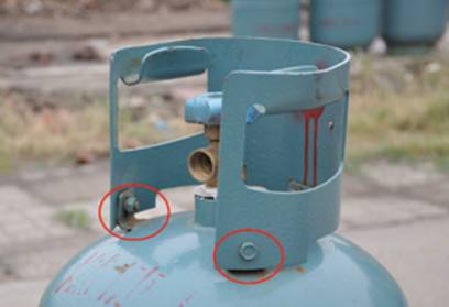 “螺丝瓶”是指护罩用螺丝联接到瓶体的液化石油气钢瓶(见图1 ),这类钢瓶瓶体上没有任何永久性制造日期,钢印已经不符合GB8334《液化石油气钢瓶定期检验与评定》的要求,并且使用年限已近15年,存在安全隐患,我区将从2011年9月30日起实行强制报废,任何充装单位不得充装“螺丝瓶”。目前,按照国家标准《液化石油气钢瓶》制造的液化石油气(见图2)可正常使用。